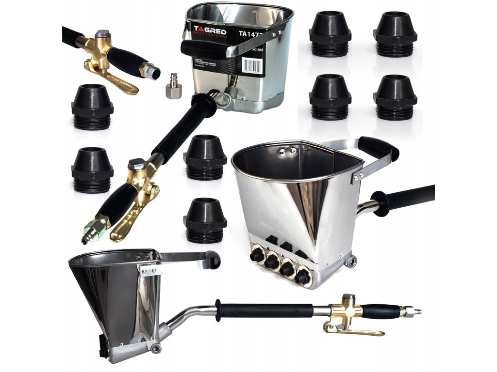 Pneumatická omietačka, omietací stroj na omietky, malty, steny, 8x kovové trysky