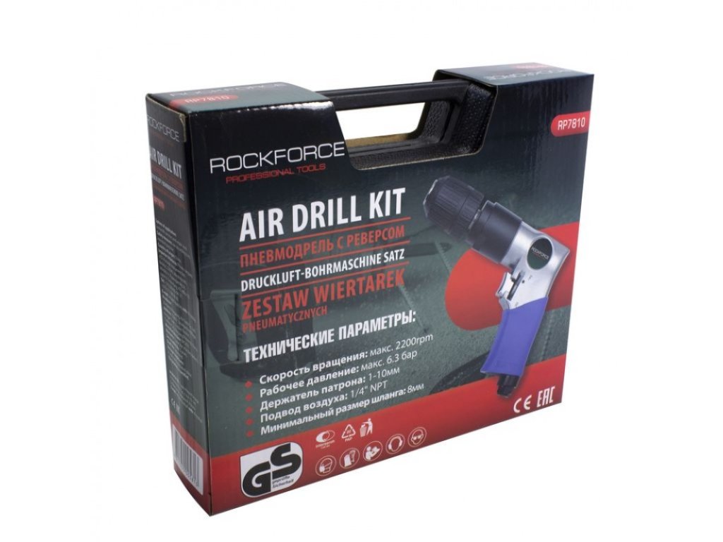 PNEUMATICKÉ VŔTAČKY S RÝCHLOUPÍNACÍM SKLÍČIDLOM + BITY A VRTÁKY, SADA 20 KS ROCKFORCE