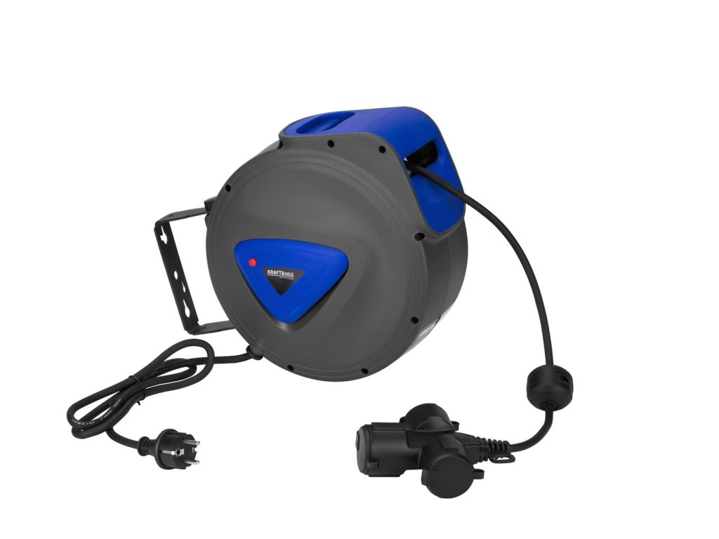 Automatický navíjací predlžovací kábel, model KD4047 značky Kraft&Dele, je ideálnym vybavením každej domácnosti, dielne i záhrady. Pevné plastové púzdro chráni kábel a ochrana proti prehriatiu, zatiaľ čo zásuvka s detskou poistkou zabezpečuje bezpečnosť. Možnosť montáže na stenu. Slúži na prepojenie vodičov, káblov, hadíc a pod.