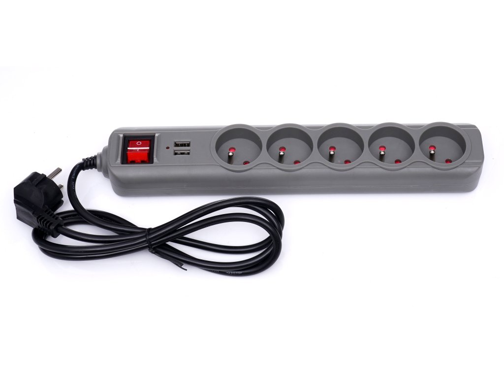 Predlžovačka s USB zásuvkami 1,5 m KD4033 - 5 zásuviek a 2 USB porty