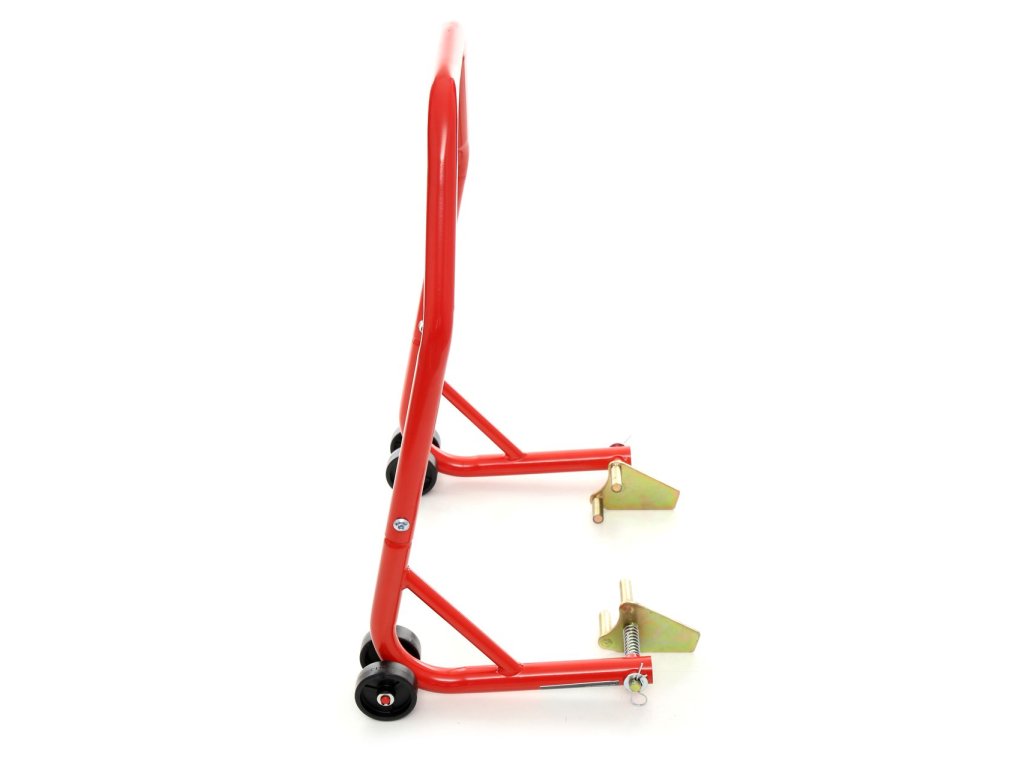 Umožňuje umiestniť motocykl (napr. pri oprave) do pohodlnej polohy bez zaťaženia pneumatík. Kompatibilný s väčšinou modelov značiek. Užitečný v každej garáži a dielni.