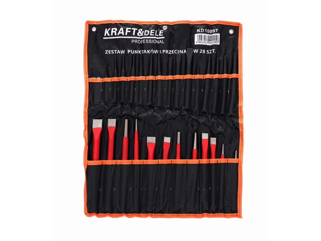 Profesionálna sada centrovacích razníkov, rezačov a vyražečov značky Kraft&Dele s označením KD10097. Sú vyrobené z vysoko kvalitnej ocele, ktorá zaručuje dlhú životnosť náradia.