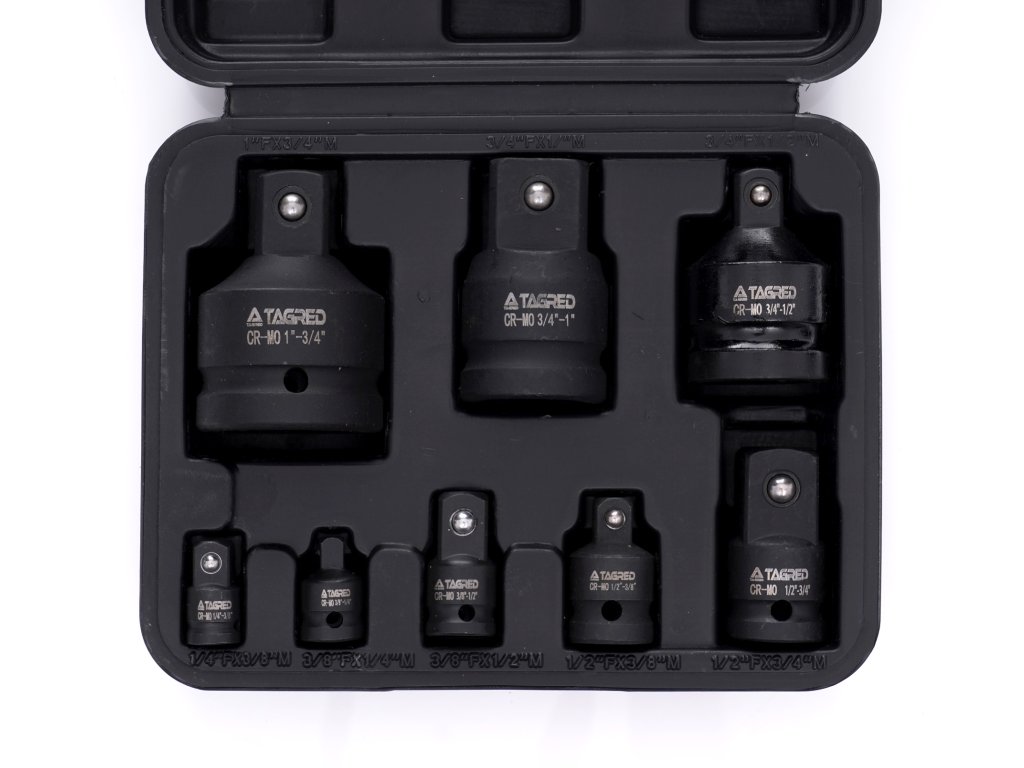 Súprava špecializovaných adaptérů / redukcií (8 kusov) je ideálnym doplnkom pre prácu pod záťažou, či už v domácej dielni alebo v profesionálnom prostredí.