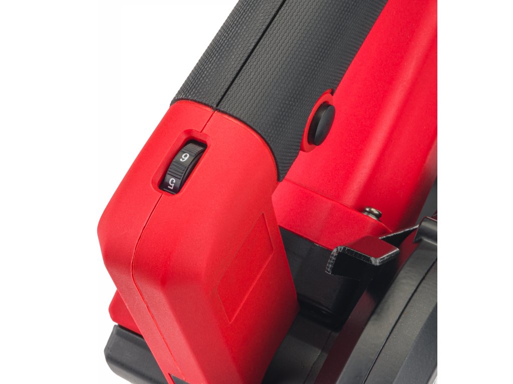 - Možnosť regulácie hĺbky rezu nahor-dolu. Zámková páka umožňuje jednoduché uvoľnenie a nastavenie disku na požadovanú výšku.