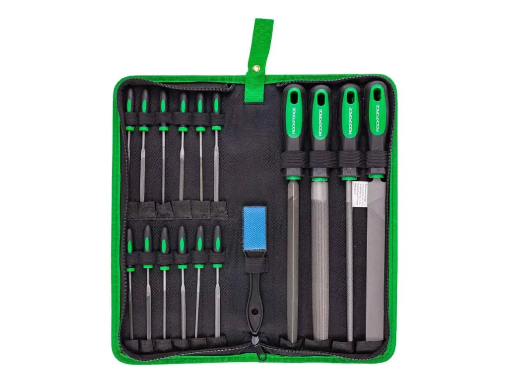 ROCKFORCE Sada pilníkov a ihlových pilníkov 17 ks pre kov a drevo, s puzdrom