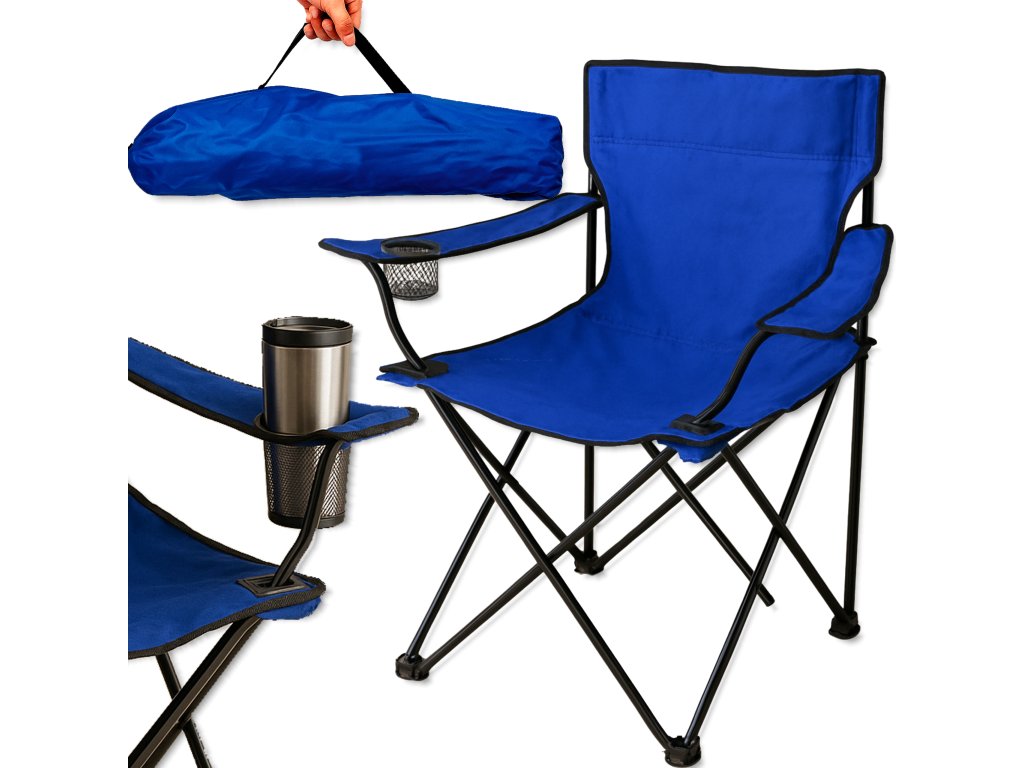 Rybárske skladacie kreslo s operadlom a držiakom na nápoj