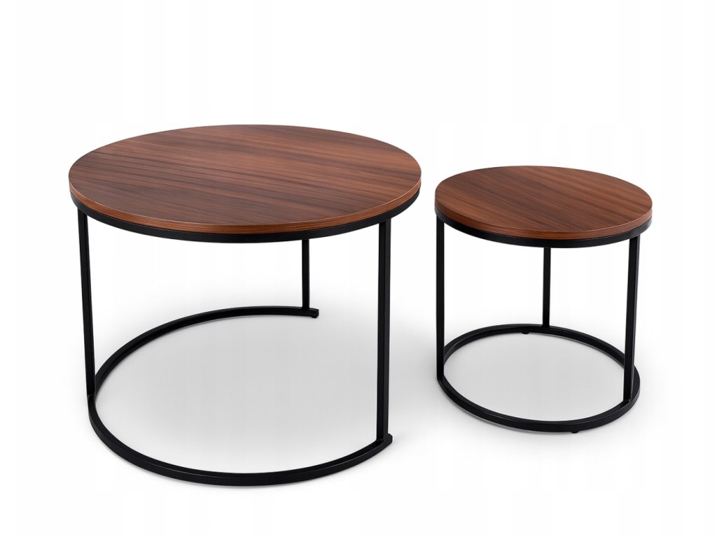 Sada 2 okrúhlych konferenčných stolíkov 2v1, kovová konštrukcia, 70×45 cm + 50×40 cm