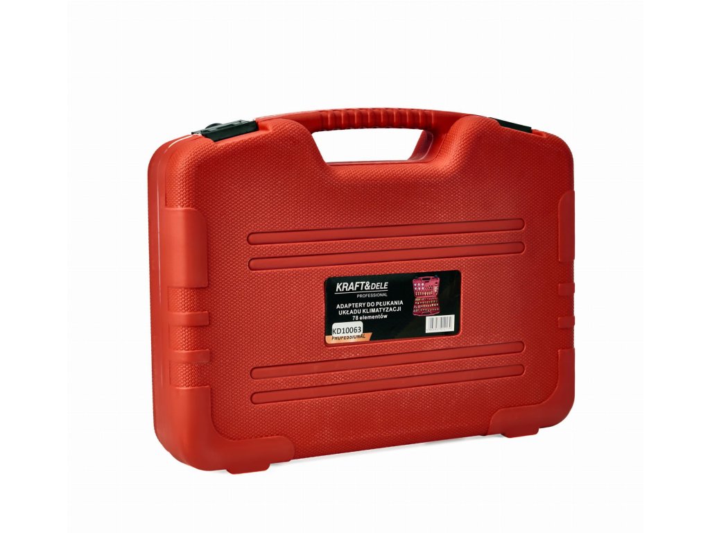 Profesionálna sada adaptérov pre preplach klimatizácie značky Kraft&Dele model KD10063 skladajúci sa z 78 dielov. Súprava je mimoriadne univerzálna, pretože je určená pre väčšinu značiek dostupných na trhu.