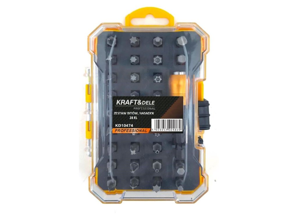 Profesionálna sada bitov, model KD10474, obsahuje 28 prvkov rôznych veľkostí. Táto sada je navrhnutá s ohľadom na trvanlivosť, spoľahlivosť, presnosť spracovania a vysokú kvalitu použitých materiálov. Moderné konštrukčné riešenie a ďalšie výhody tejto sady určite uspokoja aj tých najnáročnejších používateľov. Všetko je uzavreté v praktickom balení, ktoré uľahčuje rýchly prehľad dostupných nástrojov.