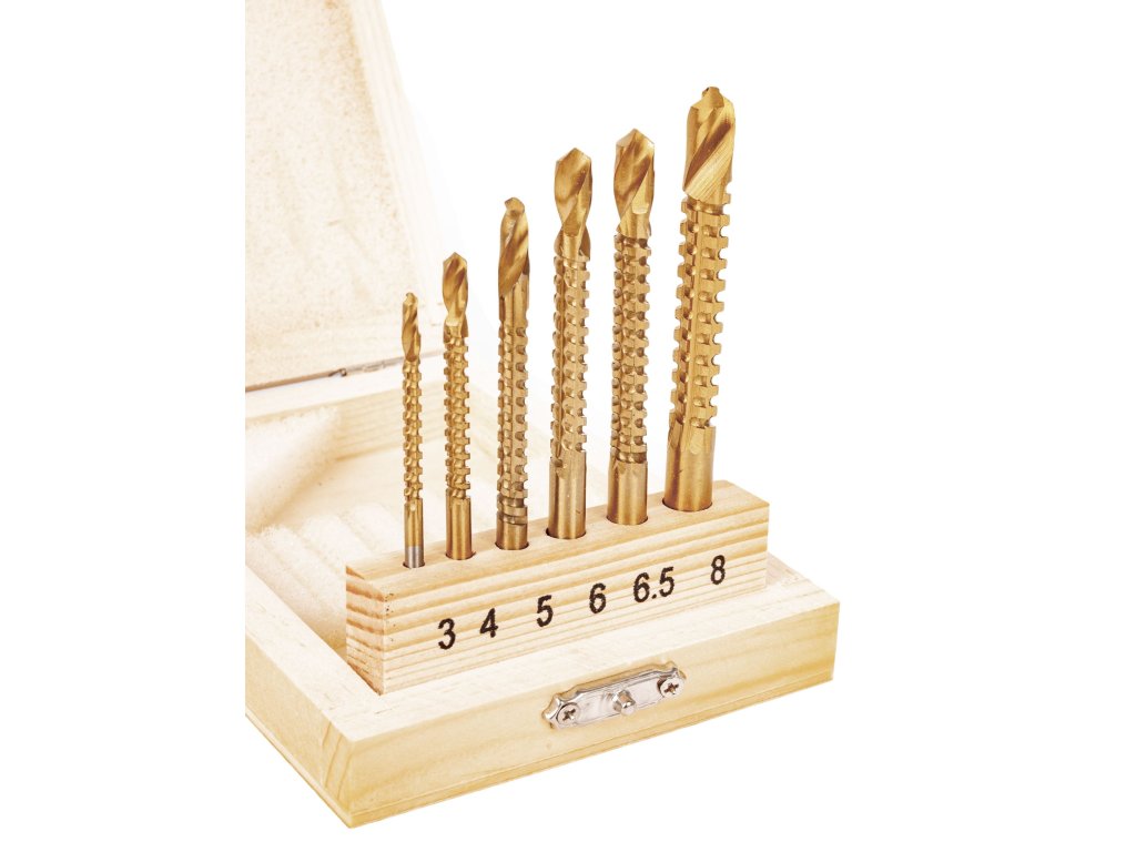 - Veľkosti fréz: 3 mm, 4 mm, 5 mm, 6 mm, 6,5 mm, 8 mm