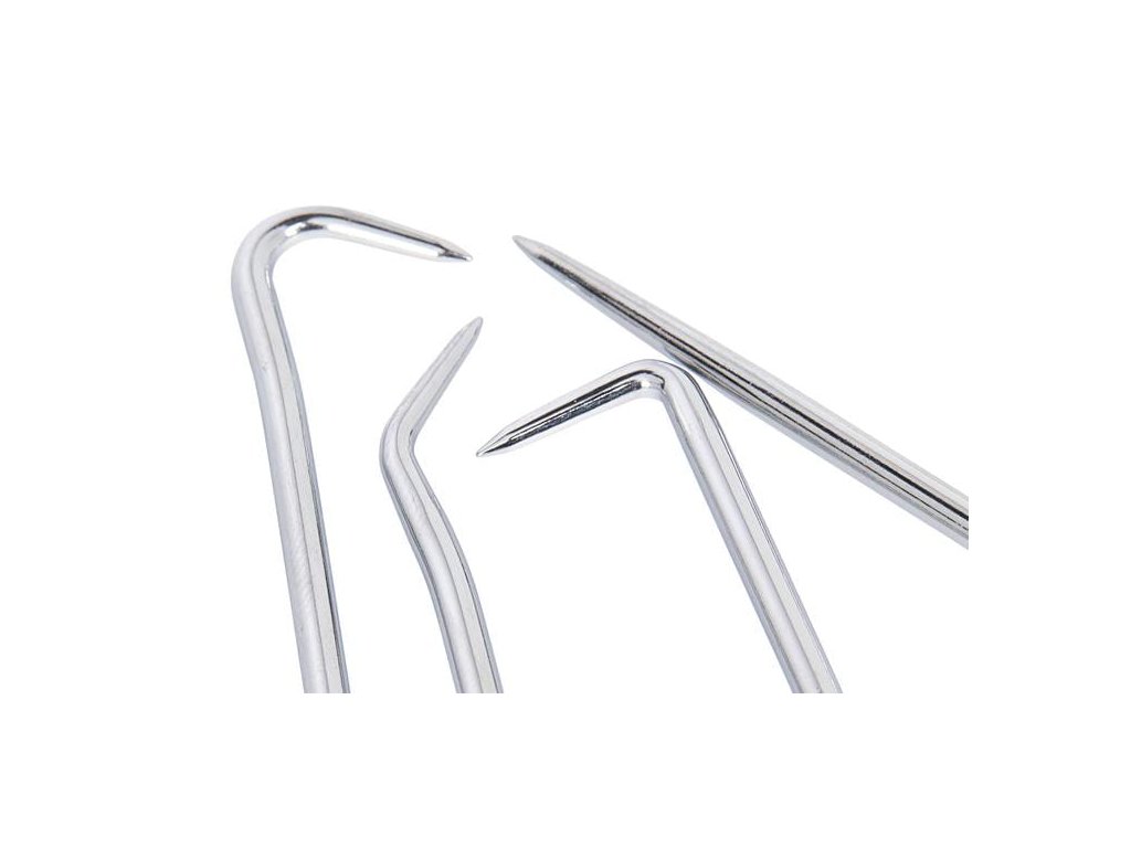 Hroty háčikov obsiahnutých v sade sú kalené a chrómované, čo im zabezpečuje nielen výnimočnú odolnosť, ale aj ochranu proti korózii. Vďaka použitiu pružnej ocele sú tieto háčiky mimoriadne odolné a efektívne v rôznych pracovných podmienkach.