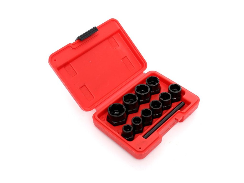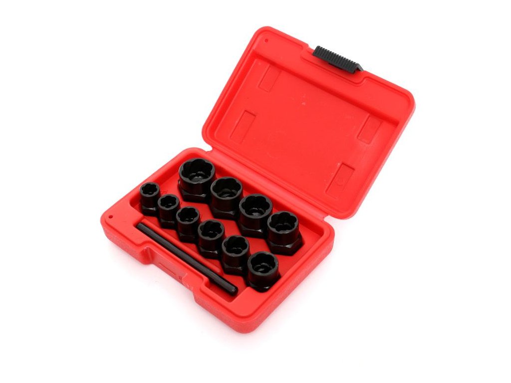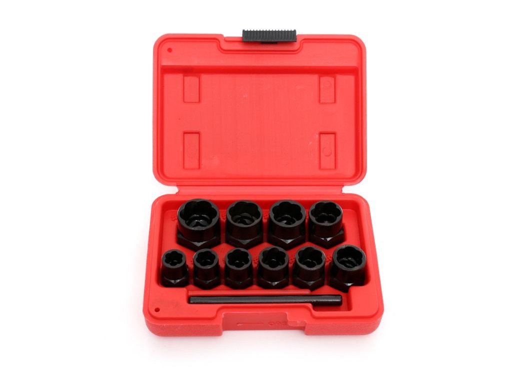 Sada hlavíc a kľúčov, 10 ks, model KD10270, je navrhnutá pre efektívne odstránenie zlomených skrutiek alebo matíc. Špeciálne tvarované nástavce sa ľahko zaseknú na poškodenej skrutke, čo umožňuje jej vyšroubovanie.