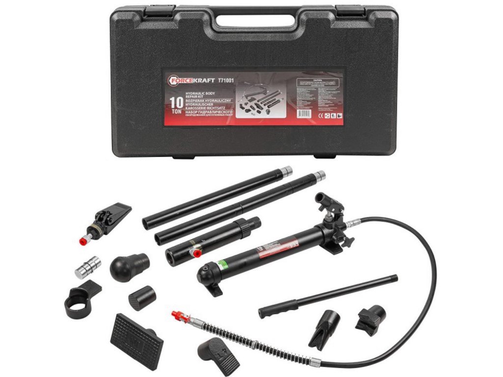 Sada obsahuje hydraulické čerpadlo, valce, predlžovacie diely a zahnuté nástavce. Je možné ju tiež doplniť o hydraulický valec s opačným chodom a upínacími nástavcami.