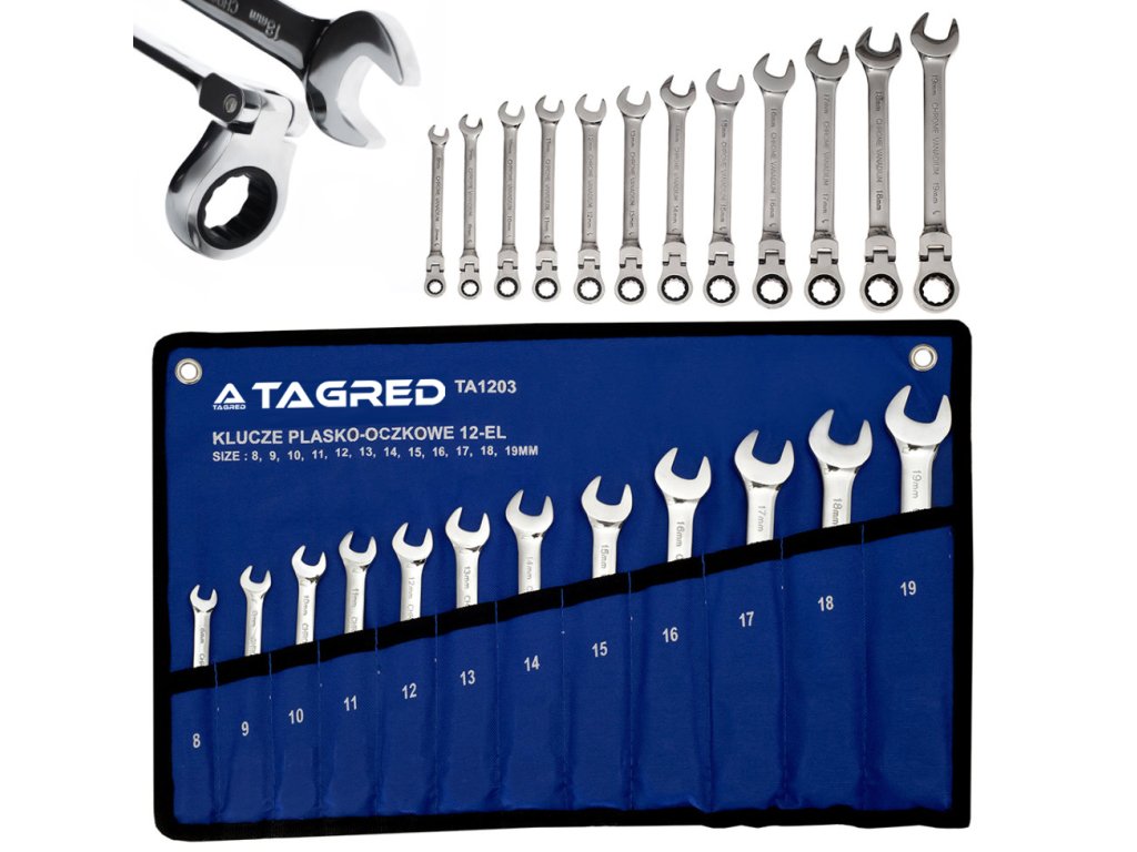 Sada kľúčov očkoplochých s kĺbom, račňou 12 ks 8-19 mm, v puzdre, CrV - kované, kalené