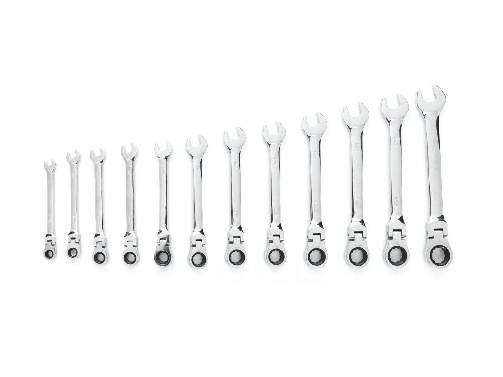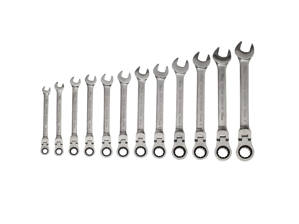 - Ploché a očkové kľúče s kĺbovým mechanizmom pre maximálnu flexibilitu.