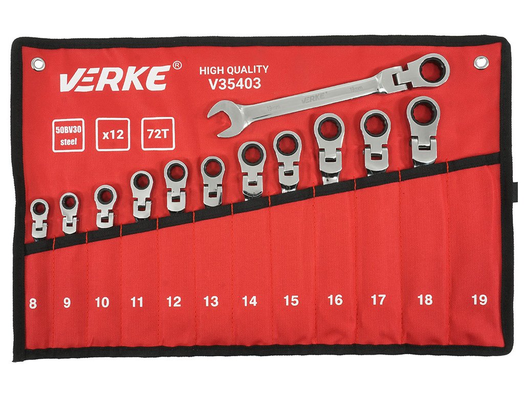 Sada kľúčov očkových s račňou a kĺbom 8-19 mm, 12 ks, VERKE V35403
