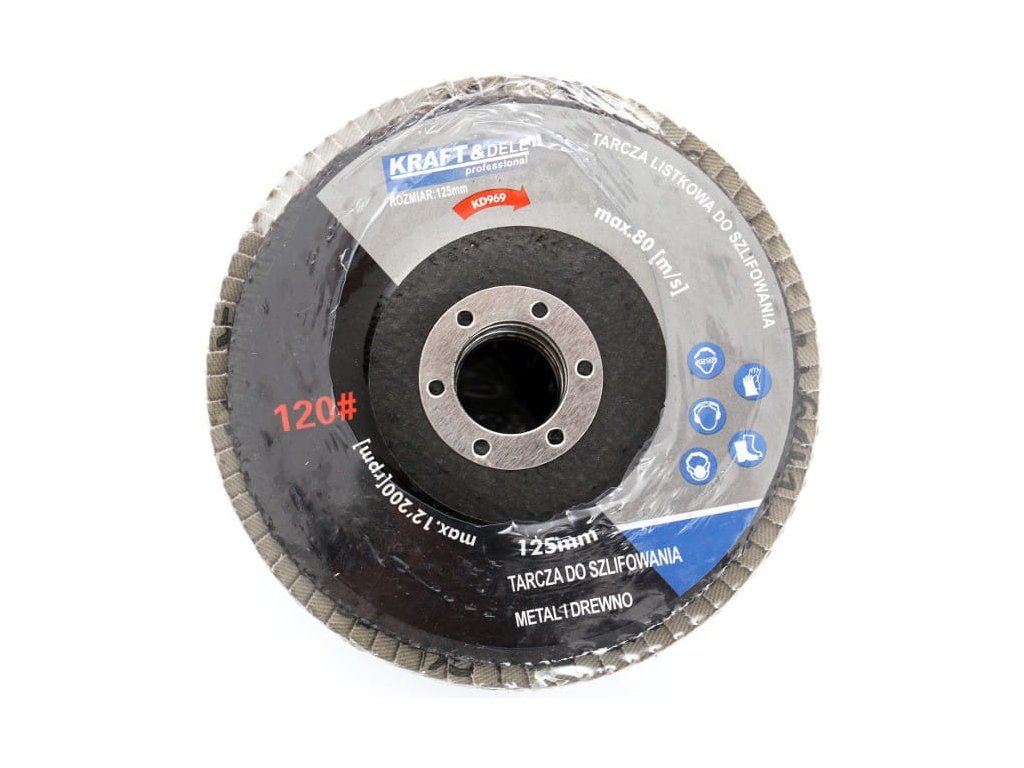 Listový kotúč značky KD969 je univerzálny kotúč určený na brúsenie kovu a dreva. Tento model kotúča využíva zrnitosť na úrovni P120 a je balený po 10 kusoch.