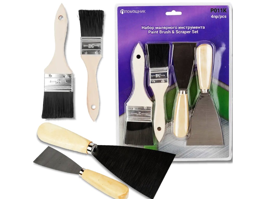 Profesionálna sada maliarskych nástrojov - 4 diely (2 štetce + 2 špachtle) - je nenahraditeľný komplet, ktorý sa výborne hodí ako pre drobné opravné práce, tak pre náročnejšie dokončovacie projekty. Ideálne pre profesionálnych maliarov a štukatérov , rovnako ako pre osoby vykonávajúce práce svojpomocne doma alebo na záhrade.