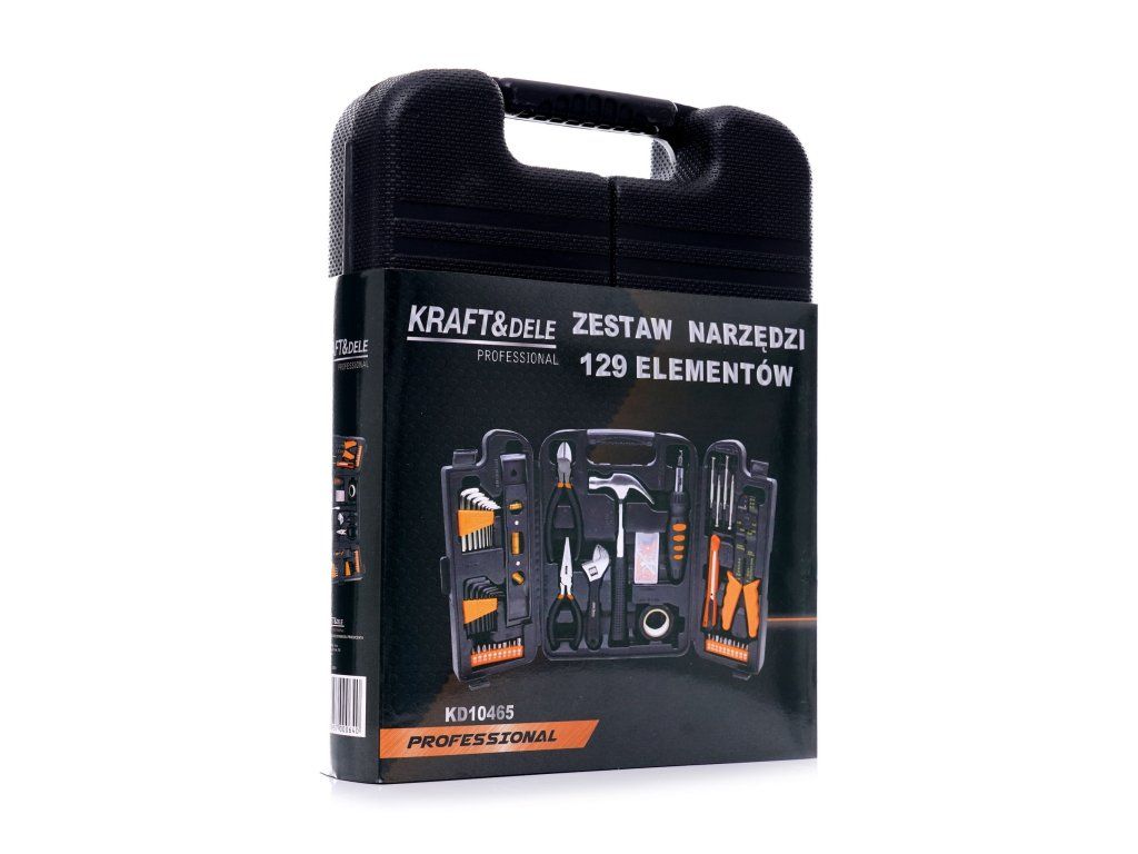 Sada náradia 129 ks KD10465. Nesmierne rozsiahla sada náradia značky Kraft&Dele s označením KD10465. Nástroje sa vyznačujú pevnou konštrukciou, odolnými materiálmi a praktickým kufríkom, v ktorom má každý nástroj svoje miesto.
