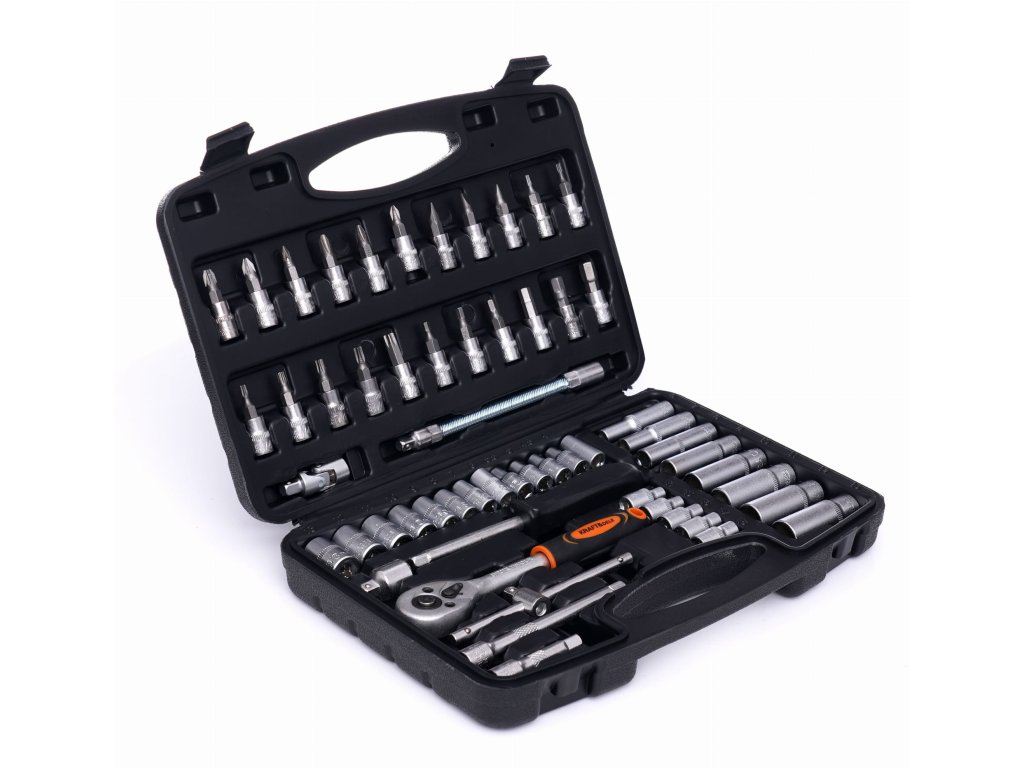 Celý set pozostáva z 56 rôznych prvkov, ktoré zabezpečia správny výber náradia podľa potreby. Náradie je vyrobené z kalená chróm-vanádiová oceľ (CrV) určená pre dielenské nástroje. Chróm zaručuje odolnosť ocele proti korózii, oxidácii a oderu a vysokú odolnosť voči vysokým teplotám. Prímes vanádu bráni rastu zŕn počas spracovania a zároveň zvyšuje tažnosť ako kalenej, tak aj popustenej ocele.