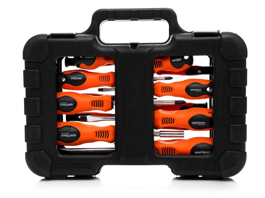 Sada skrutkovačov a bitov 58 dielov KD10903 značky Kraft&Dele je vhodná do každej garáže či dielne. Priložený kufrík uľahčuje uskladnenie skrutkovačov.