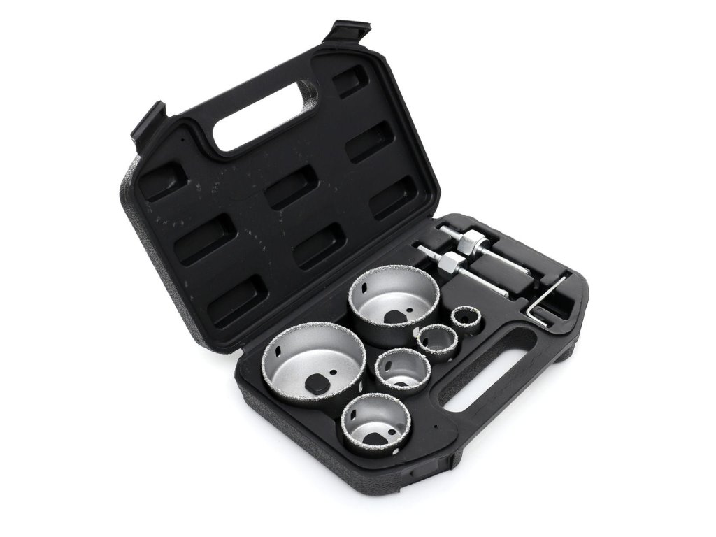 Sada KD10285 obsahuje 6 dierovačov v rozmeroch: 22, 29, 38, 44, 67, 73 mm, imbusový kľúč a dva adaptéry s vrtákom.