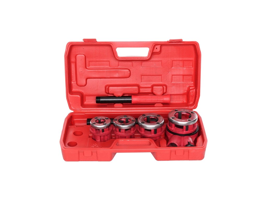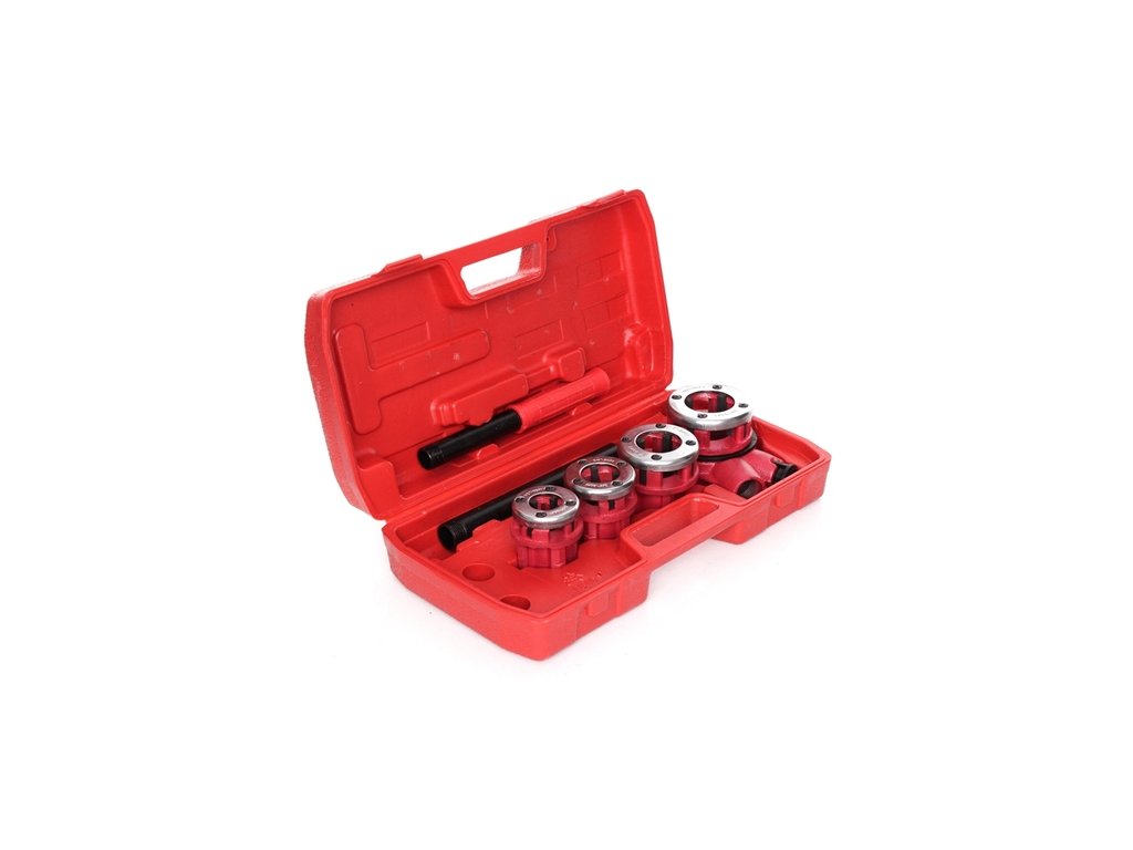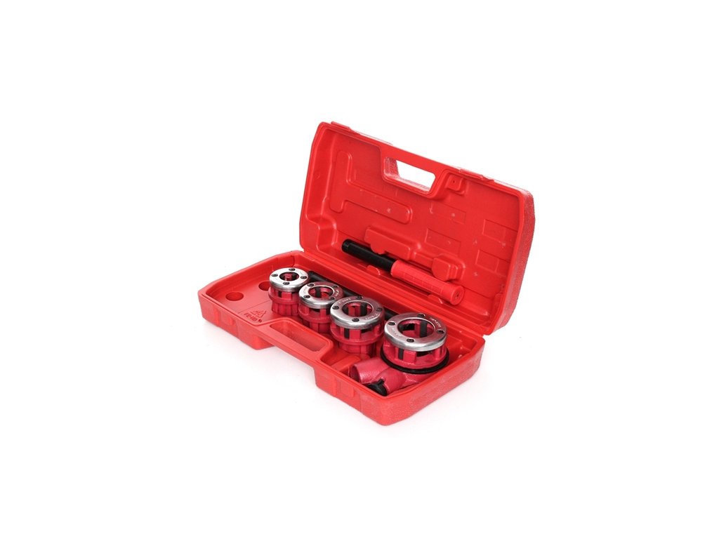 Sada závitníkov na rúry, 4 očká, model KD330, umožňuje vytváranie trvalých závitových spojov. Je ideálna pre hydraulické práce aj pre použitie vo stolárskych dielňach.