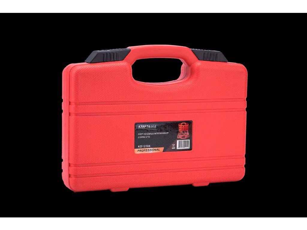 Sada fréz značky Kraft&Dele, model KD12504, určená na čistenie a dekarbonizáciu sediel vstrekovačov. Odstraňuje karbon zo sedla vstrekovača, čo umožňuje jeho správne usadenie v sedle. Odstránenie karbonu a vyhladenie sedla zabezpečuje tesné dosadnutie podložky na sedlo vstrekovača. Použitie sady predchádza netesnostiam, ktoré vedú k prepáleniu sedla a poškodeniu bloku motora. Táto sada je vhodná pre väčšinu osobných vozidiel vyrobených po roku 2000.