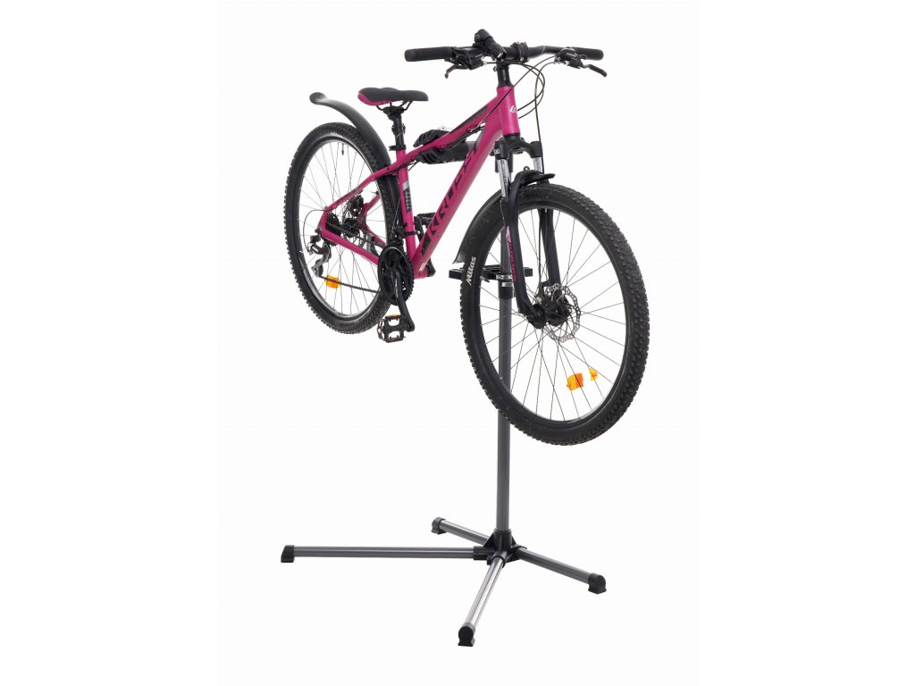 Stojan je výškovo nastaviteľný od 105 cm do 143 cm, takže si môžete prispôsobiť rozmer podľa vlastných potrieb. Disponuje otočnou hlavou, vďaka čomu môžete kolo umiestnené na stojane otáčať okolo osi. Vyniká gumovými rukoväťami, čo zabezpečuje, že nepoškodíte lak vášho bicykla.