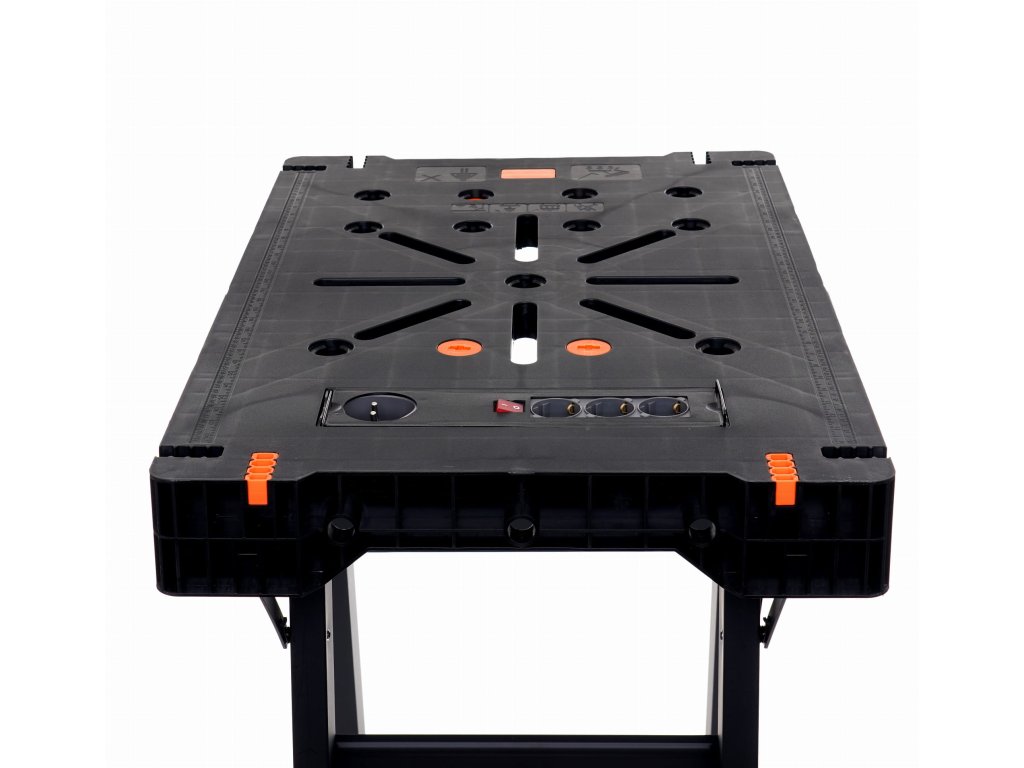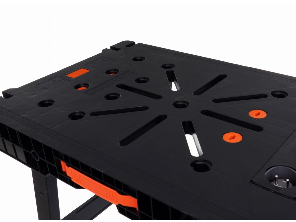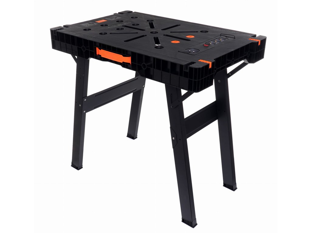 Prenosný skladací pracovný stôl, model KD10746, je multifunkčné zariadenie určené pre každého kutila aj profesionála. Bol vyrobený z najkvalitnejšieho plastového materiálu. Pracovná doska je odolná voči poveternostným podmienkam. Ideálny pre dielne, sklady aj domáce použitie.