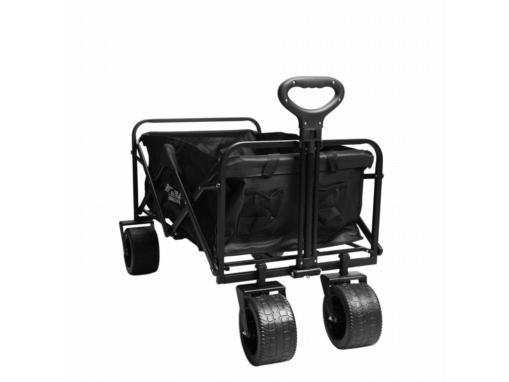 Rám vozíka je vyrobený z vysoko kvalitnej ocele. Ergonomická skladacia rukoväť umožňuje prispôsobenie výšky podľa vašich potrieb. Rukoväť je potiahnutá gumou, aby zabezpečila komfort a pohodlie. Vystužené dno doplnené praktickým obalom. Vozík je vybavený brzdou na predných kolesách, ktorá zaisťuje bezpečnosť prepravovaného tovaru.