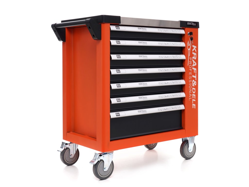 Skrinka s náradím značky Kraft&Dele umožňuje udržať poriadok na pracovisku. Zabezpečí lepšiu organizáciu a pohodlie pri rôznych prácach. Skrinka / vozík má 6 zásuviek naplnených náradím renomovanej značky. Jedna zásuvka je prázdna. Kúpou našej skrinky skráťite čas práce tým, že budete mať množstvo nástrojov na jednom mieste.