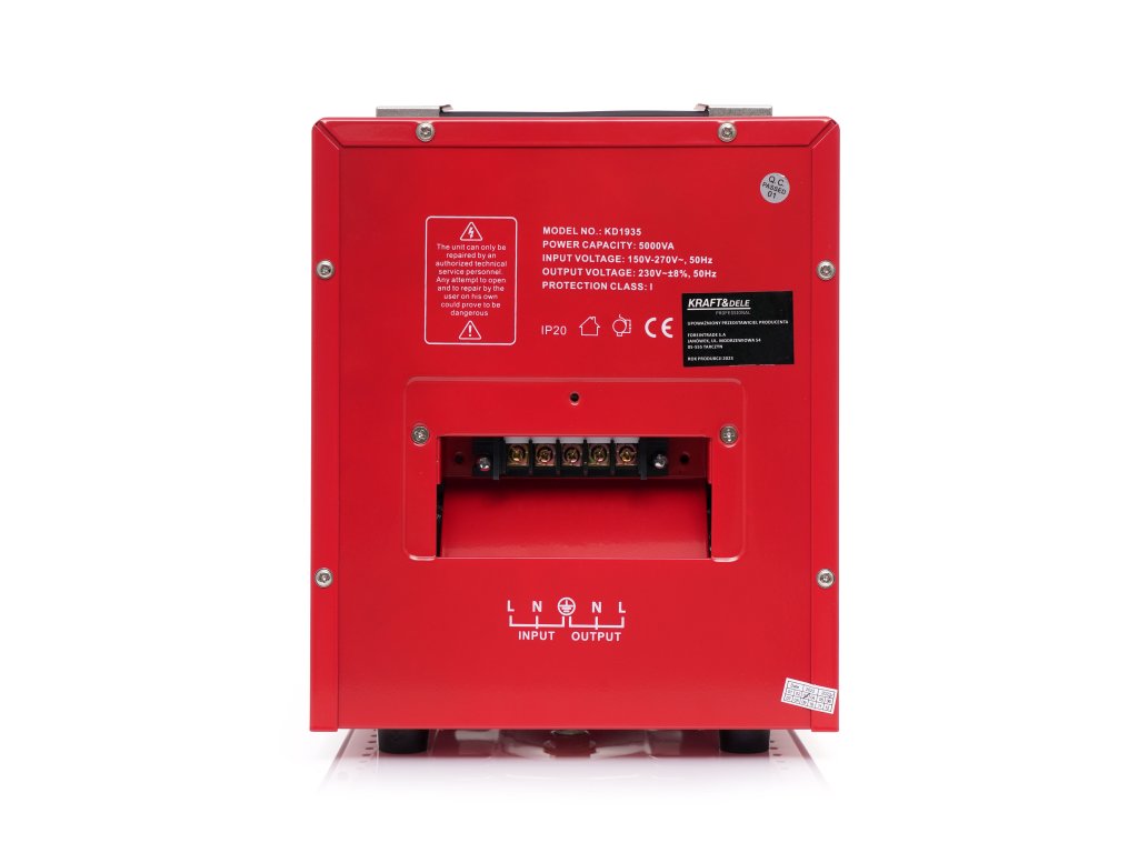 Stabilizátor napätia model KD1935 sa vyznačuje vysokou spoľahlivosťou a odolnosťou. Tento stabilizátor kombinuje funkcie regulátora napätia a prepäťovej ochrany, čo zaisťuje bezpečnosť pripojených zariadení vďaka nízkemu šumu a vysokej presnosti stabilizácie. Hlavnou funkciou je automatická regulácia vstupného napätia, aby bolo dosiahnuté stabilné výstupné napätie. Stabilizátor je určený na ochranu elektrických zariadení pred výkyvmi napätia.