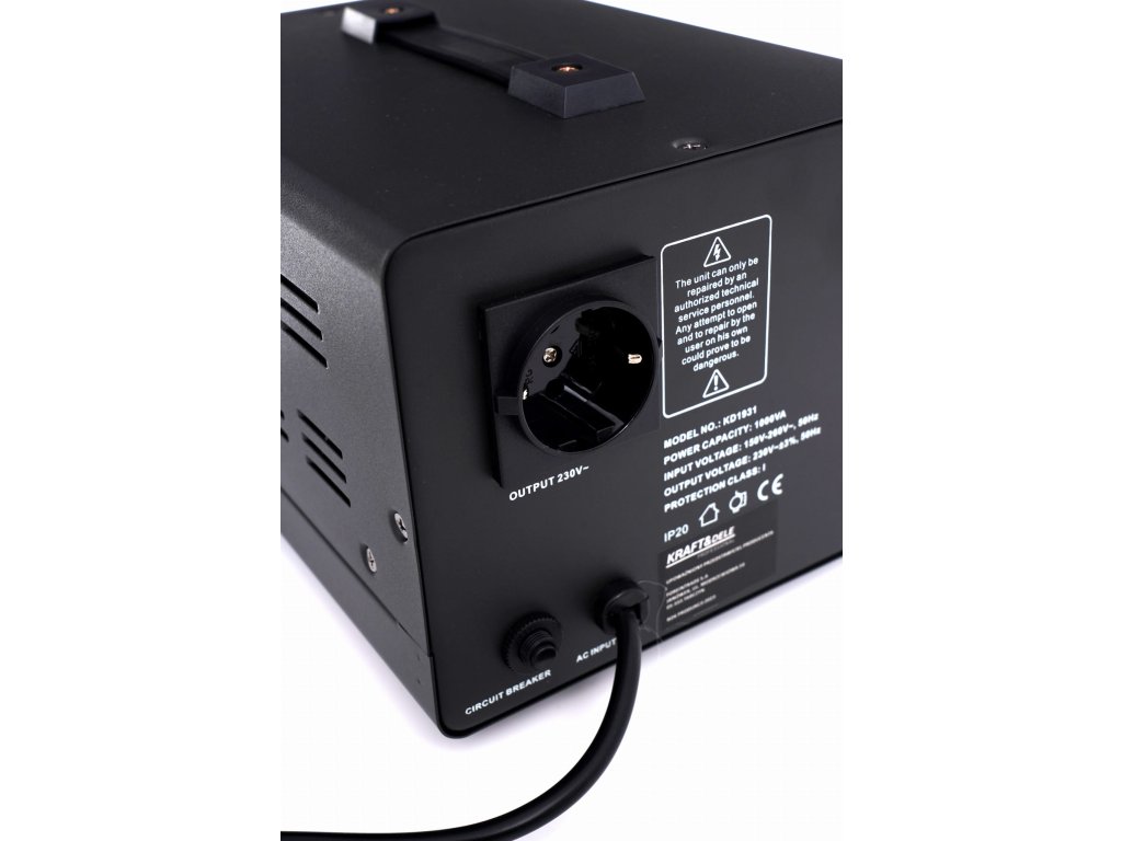 Stabilizátor napätia AVR 1000 VA 230 V KD1931 značky Kraft&Dele sa vyznačuje vysokou spoľahlivosťou a odolnosťou. Hlavnou funkciou stabilizátora je automatická regulácia napätia privádzaného na jeho vstup. Kombinuje vlastnosti dvoch zariadení: napäťového regulátora a prepäťovej ochrany. Nízky šum a vysoká presnosť stabilizácie zaručujú bezpečnosť pripojených zariadení.
