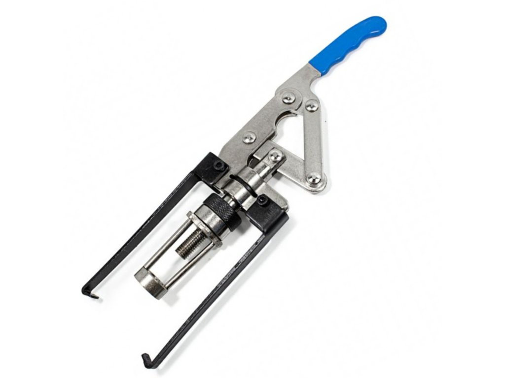 - Prístroj má zosilnenú páku s piatimi kĺbmi, nastaviteľnou tlačnou tulejou a ramená na uchopenie ventilovej pružiny.