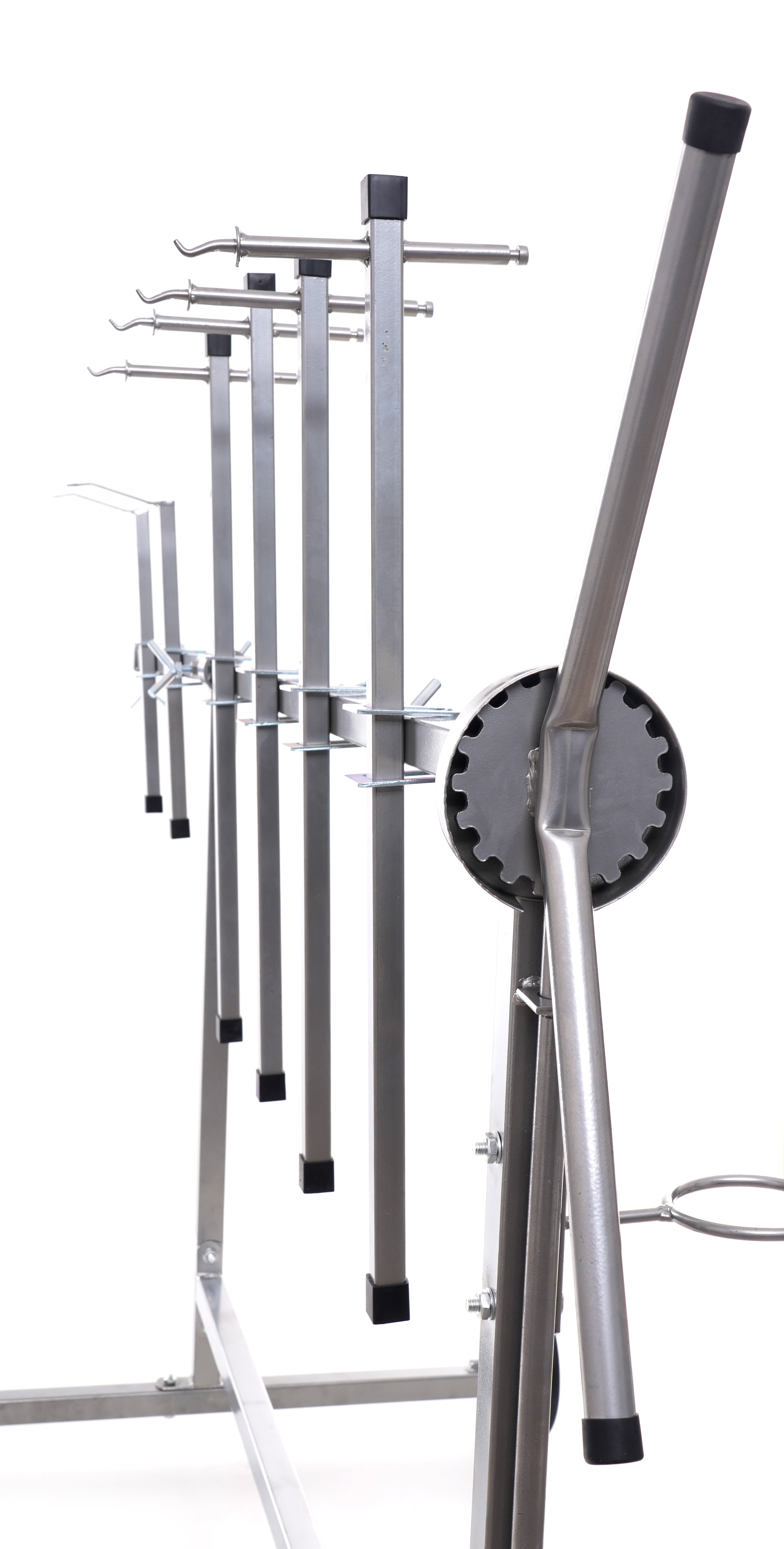 Stojan je vybavený pevnými gumovými kolieskami, ktoré sú potiahnuté vrstvou odolnou voči chemikáliám.