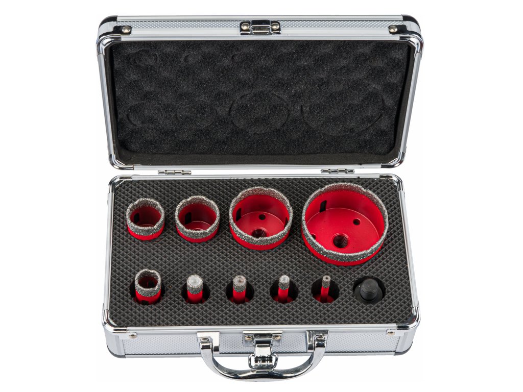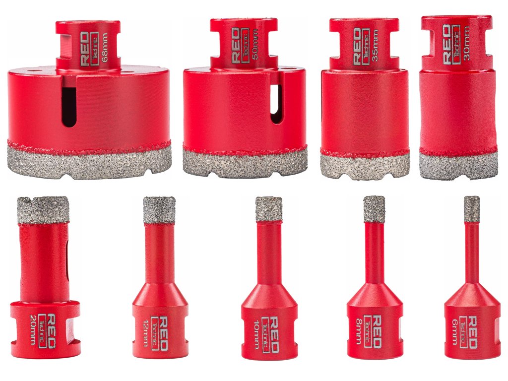 Veľký diamantový vrták (68 mm / 50 mm / 35 mm / 20 mm) je ideálny pre vŕtanie otvorov do glazúry, potrebných na upevnenie opôr pod police, a tiež na umiestnenie hmoždinky alebo háčikov, na ktoré zavesíte skrinky. Pri montáži skrine alebo komody sú väčšie vrtáky tiež skvelé na vyvŕtanie otvorov, čo zabraňuje prevrhnutiu nábytku. Zaručuje rýchle a presné vŕtanie otvorov bez rizika odštiepenia alebo poškodenia.