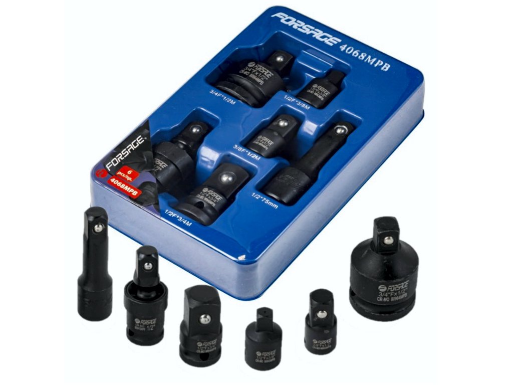 Súprava adaptérov pre rázové hlavice, 6 ks (1/2", 3/4", 3/8")