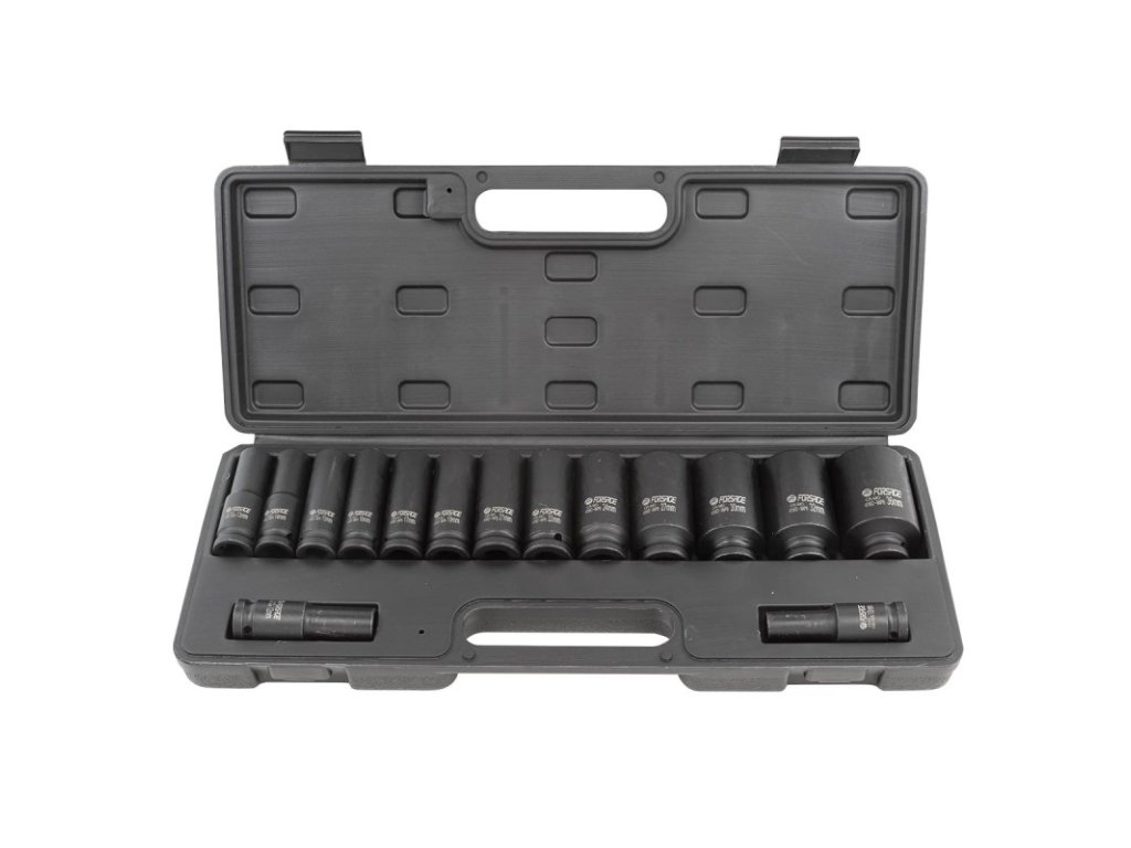 Súprava dlhých rázových hlavíc 1/2" 10–36 mm, 15 ks, 12-hranné
