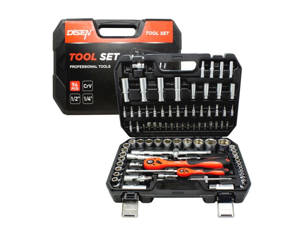 Súprava náradia – nástrčné hlavice a bity 1/2", 1/4", 94 ks