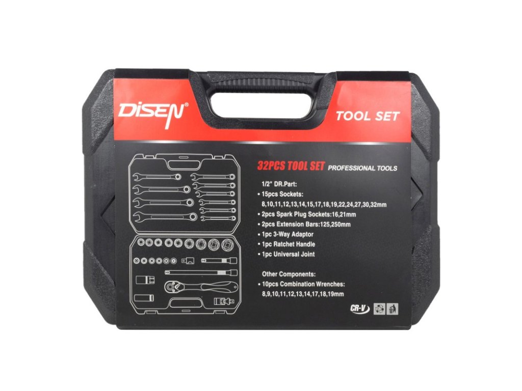 Súprava náradia 32 ks – nástrčné hlavice a kľúče Cr-V 1/2"