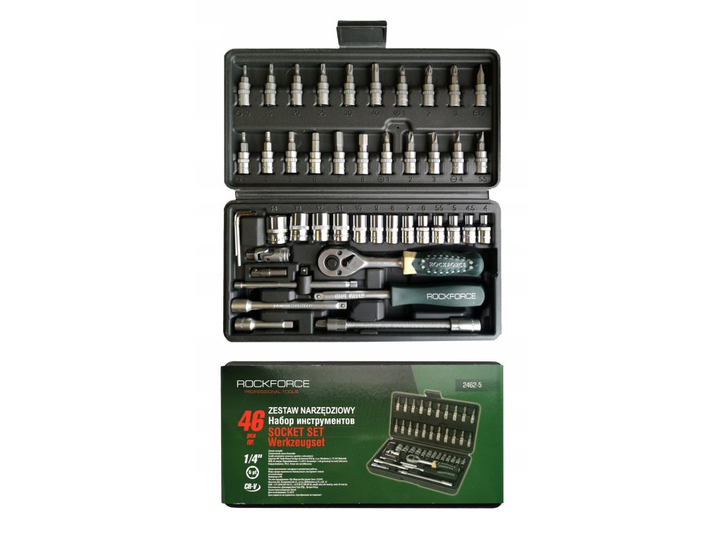 Súprava nástrčných hlavíc 1/4" obsahuje 46 dielov vyrobených z vysoko kvalitnej chróm-vanádiovej ocele .