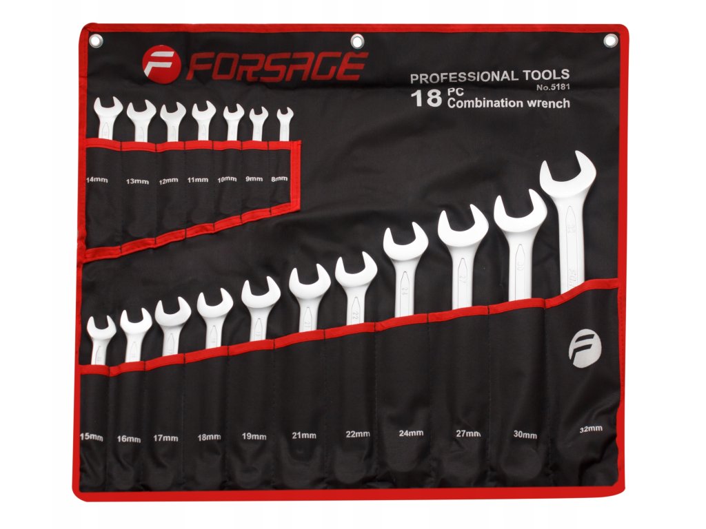 Súprava očkoplochých kľúčov 18 ks 8–32 mm CrV FORSAGE