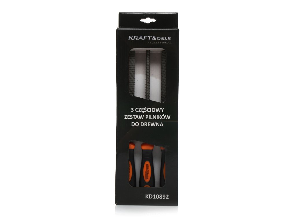 3 pilníky na drevo, model KD10892, vyrobené z kvalitnej ocele, ktorá zabezpečuje ich dlhú životnosť a efektivitu pri práci. Každý pilník je vybavený ergonomickou rukoväťou, ktorá zaručuje pohodlné držanie a znižuje únavu pri dlhodobom používaní.