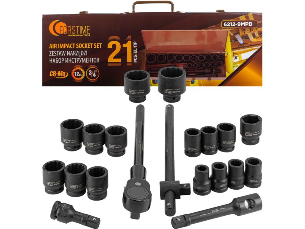 Súprava rázových hlavíc 3/4", 21 ks, 17–50 mm, 12-hranné, pre nákladné vozidlá (TIR)