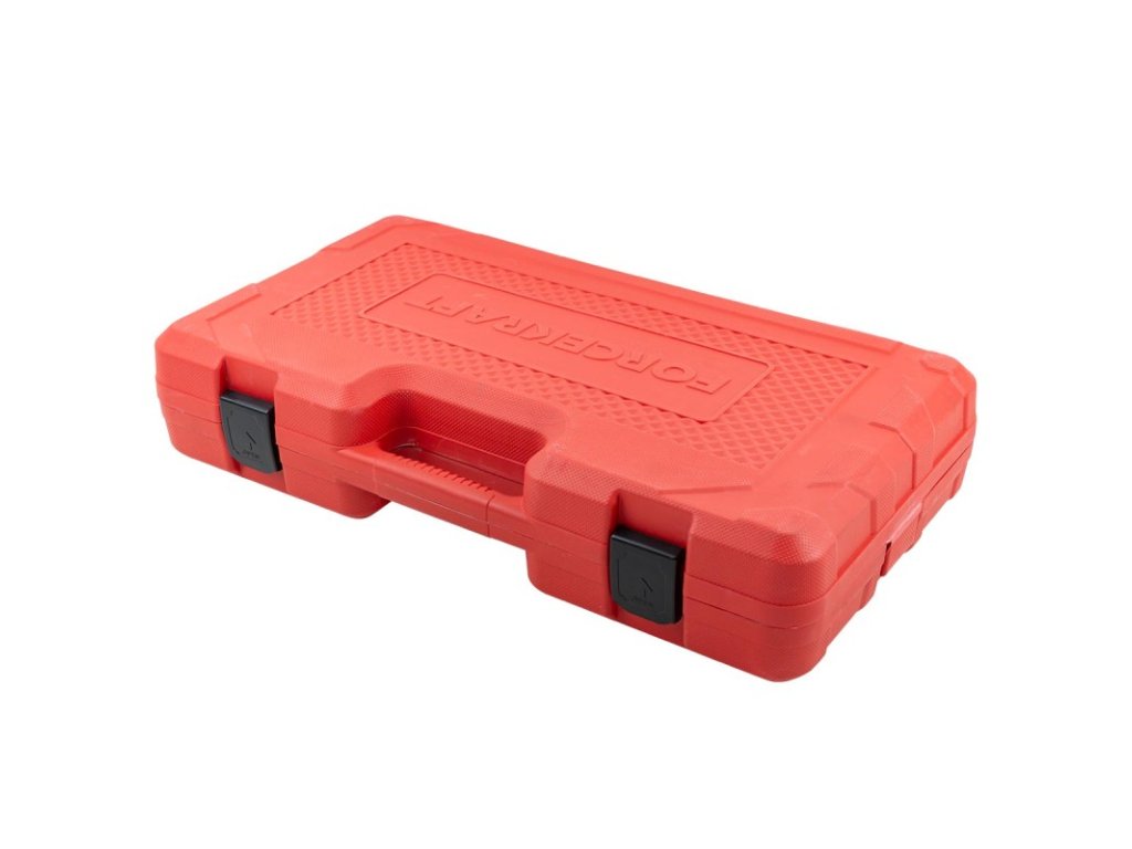 Sada obsahuje 26 dielov . Všetky hlavice a redukcie sú uložené v praktickom plastovom kufri , ktorý zaisťuje bezpečný prevoz bez možnosti samovoľného otvorenia.