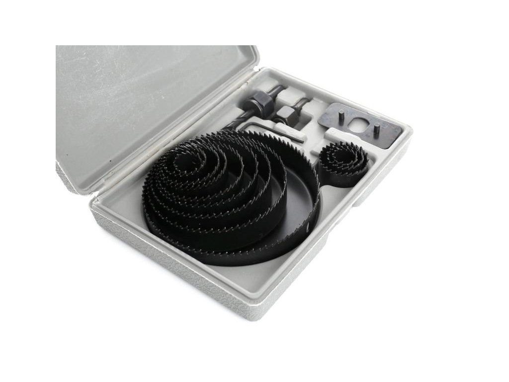 Súprava na vŕtanie do dreva - 16 vrtákov s priemermi 19-127 mm je ideálna na vyrezávanie otvorov v dreve, sadrokartóne a kartónových doskách. Táto súprava je nevyhnutná pri dokončovacích prácach, hydraulických a elektrických inštaláciách. Vrtáky umožňujú vykrajovanie otvorov o veľkom priemere, pričom sa rez vykonáva iba po obvode vytváraného otvoru. Vrtáky majú valcový tvar s ostrými rezacími zubami na svojom zakončení a sú vyrobené z kalenej nástrojovej ocele, čo zaisťuje ich dlhú životnosť a efektivitu.