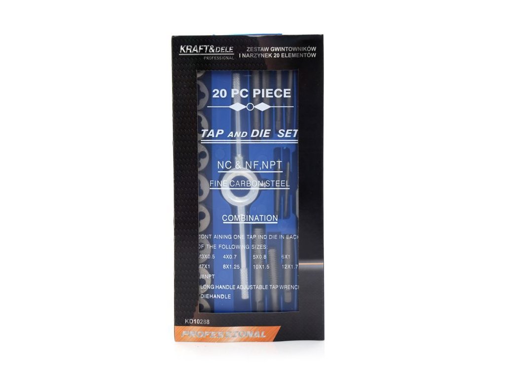 Sada závitníkov a matic 20 dielov KD10288 — profesionálna sada značky Kraft&Dele. Nástroje sú pohodlné na použitie, veľmi kvalitne spracované a nevyhnutné v každej dielni, domácej garáži či v pracovnom prevádzke. Sada slúži na opravy závitových spojov všetkých druhov vo väčšine materiálov. Vyrobené z vysoko kvalitnej tvrdenej ocele.