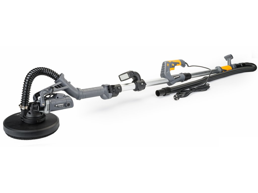 Bezprášková kĺbová brúska ŽIRAFA značky POWERMAT model PM-DG-1450DL je ideálnym pomocníkom na brúsenie sádrových omietok na stenách, stropoch a v ťažko prístupných miestach.