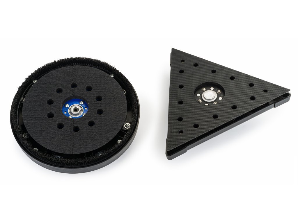 Súčasťou balenia sú dve brúsne hlavy – trojuholníková a okrúhla – ktoré je možné ľahko vymeniť podľa potreby.